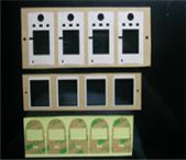 佰富彩 2、经过单座模切机(加装五金模具),冲左右两侧的中分虚线,防尘网内框以及左右两侧的定位孔(共四列)。